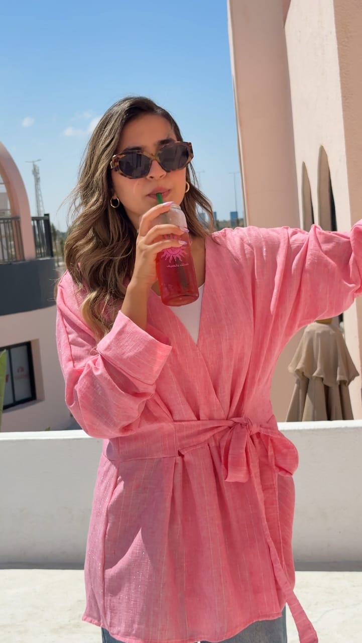 Cross blouse with internal hidden buttons and a belt for a perfect fit.