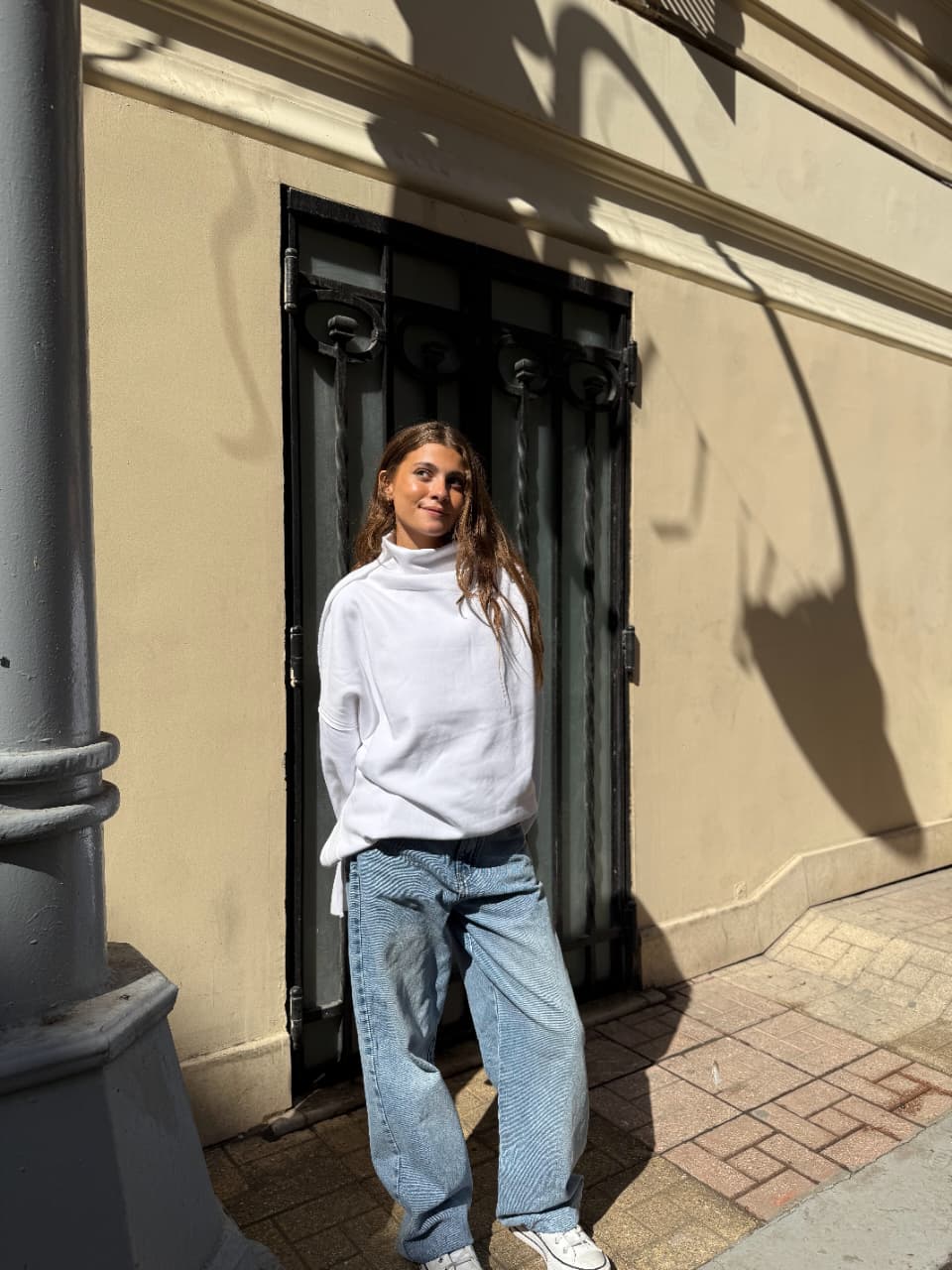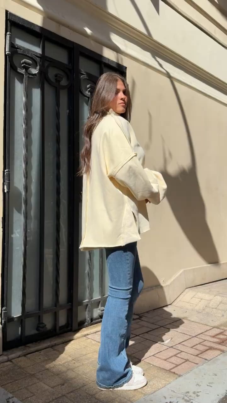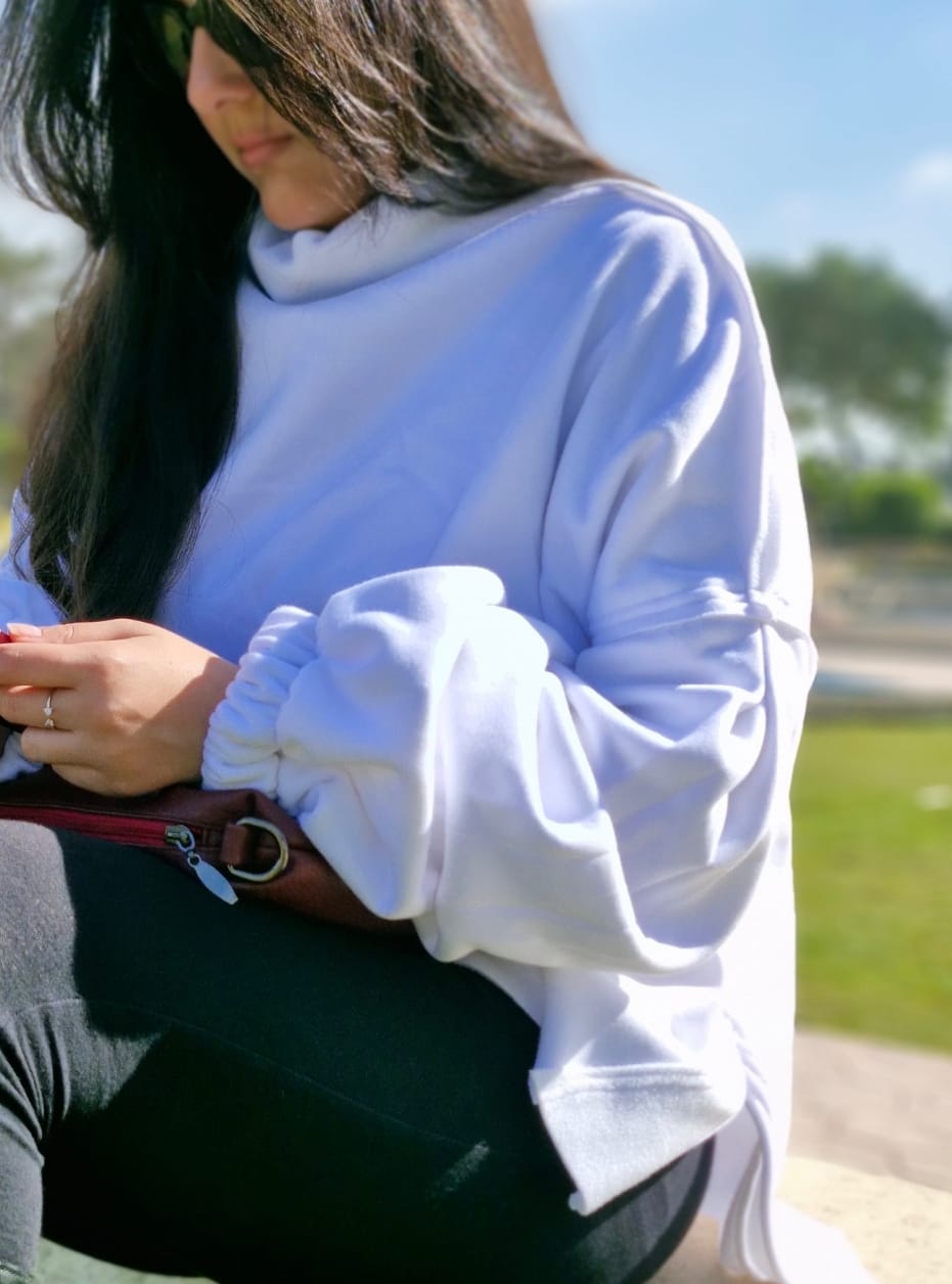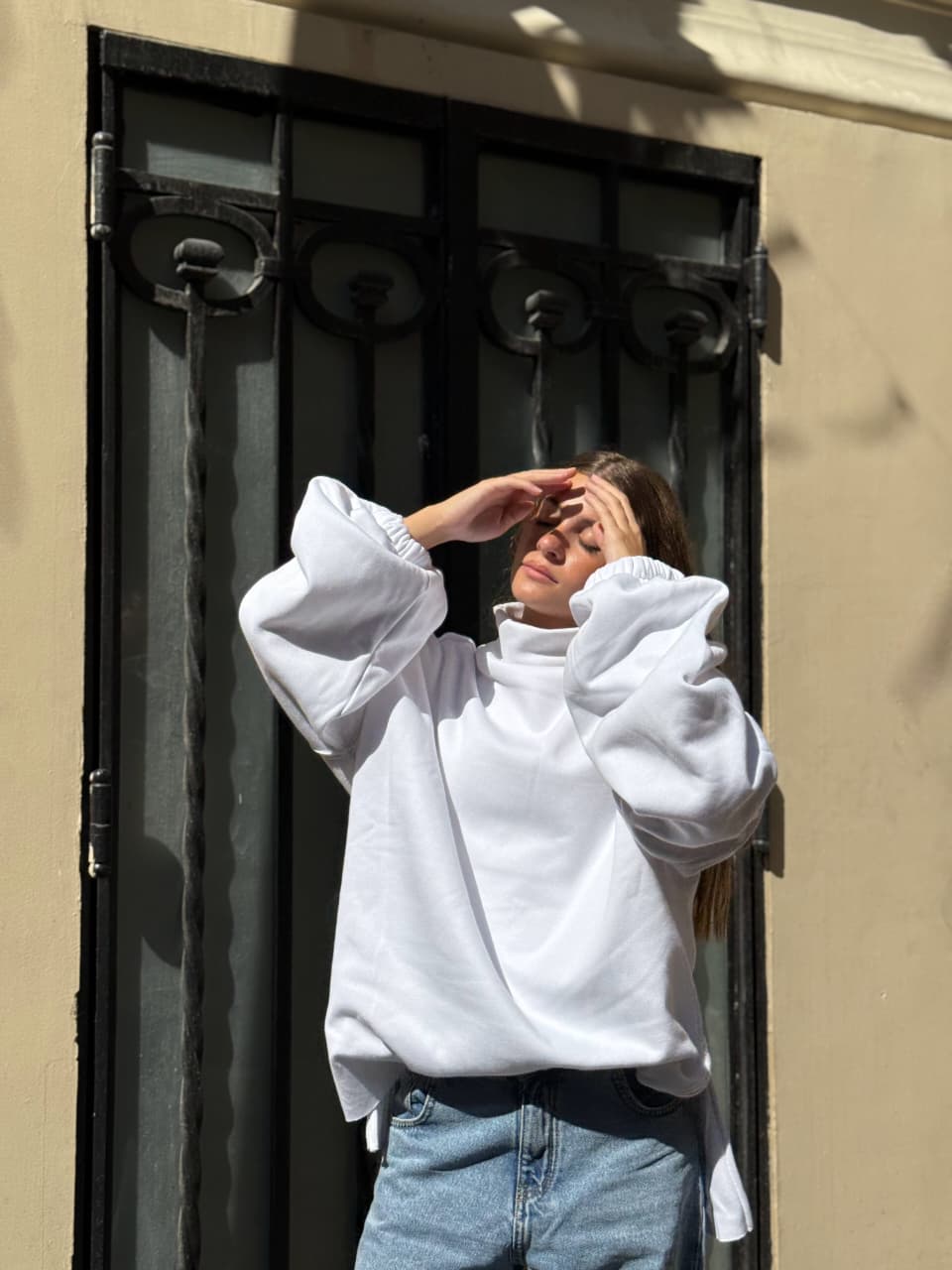 Designed with a relaxed oversized fit, cozy high neckline and roomy puffy sleeves for a comfy yet stylish look. It's your go-to for casual days.